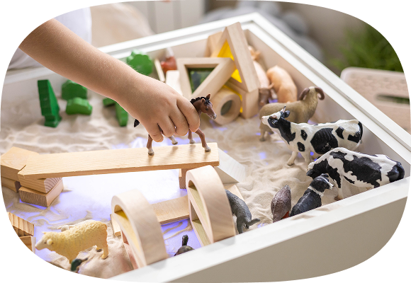 沙遊是深具象徵性的治療方式,在一個特製的沙盤中,選擇與擺放小物件,讓內在世界被看見與理解。